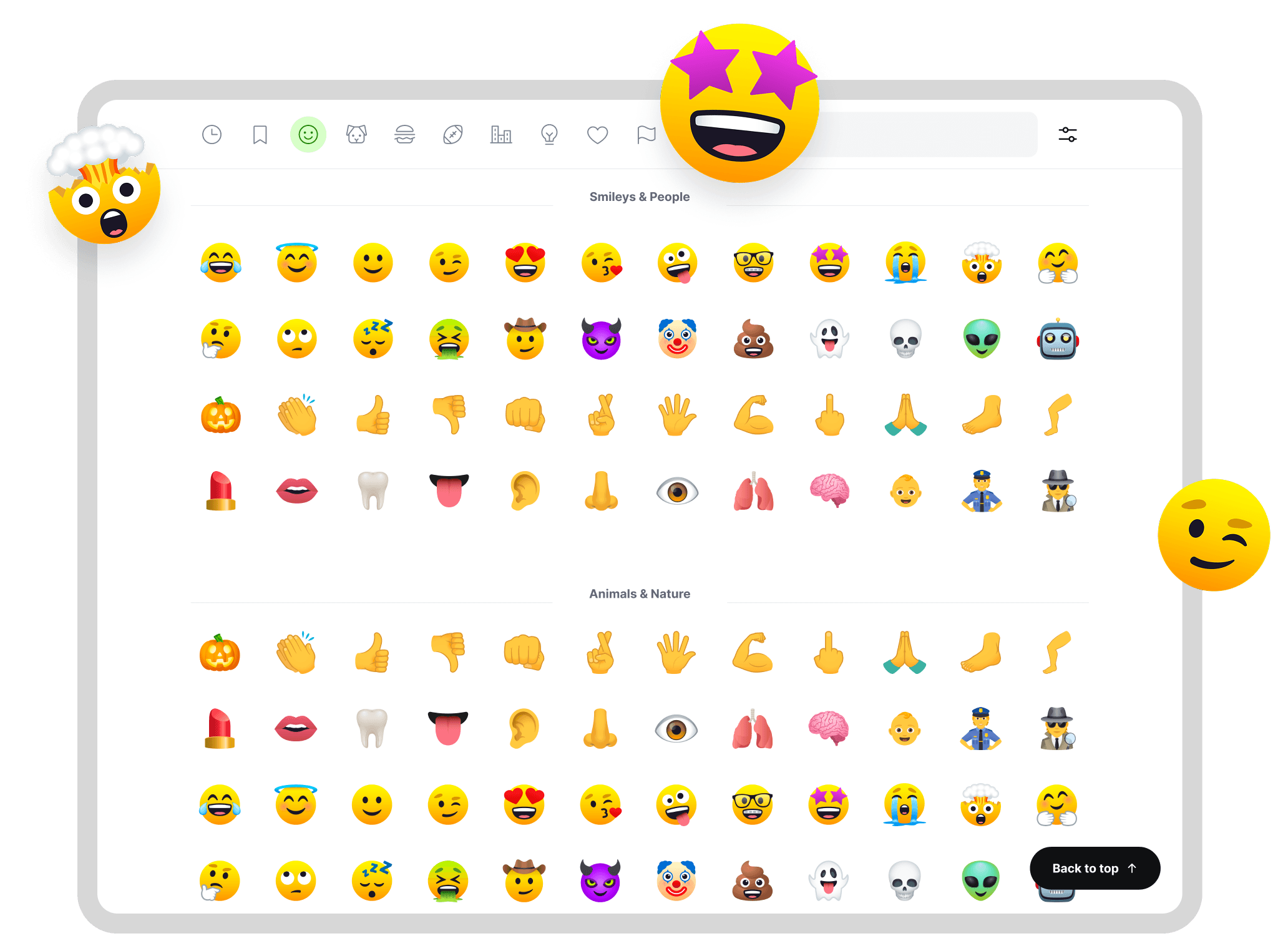 A clean and searchable emoji keyboard delivered over the web. Our mobile-friendly web app features a simple, beautiful interface that's unmatched anywhere.